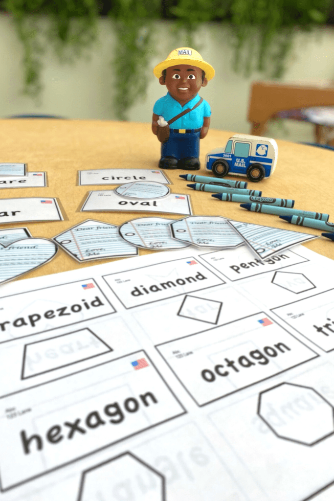 Have kids read, identify, and match the shapes. Fill in/color the worksheet as you go.