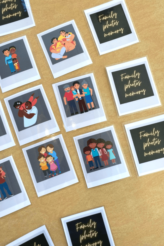 I always start with the images facing up so the kids can get a good look, and try to memorize as many matches as possible. I then flip the images face down, and have them flip 2 at a time to make a match. When we have finished with all of the matches, we love to play musical cards! Choose one image that looks significantly different and make that the “out” card. If you have 5 players, you should have 5 cards-including the “out card”. Flip them face down, hands in the air, and play a song. When the music stops everyone places a hand on any card they want. One by one flip them, who ever has the “out card” is out! Repeat this process, removing a card each time, until there is a winner.