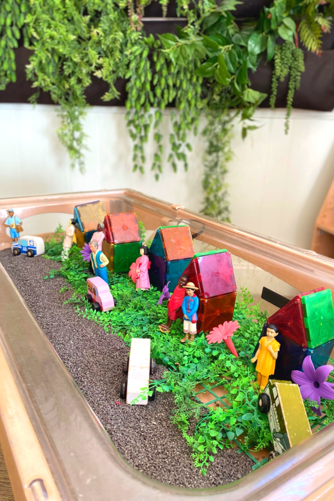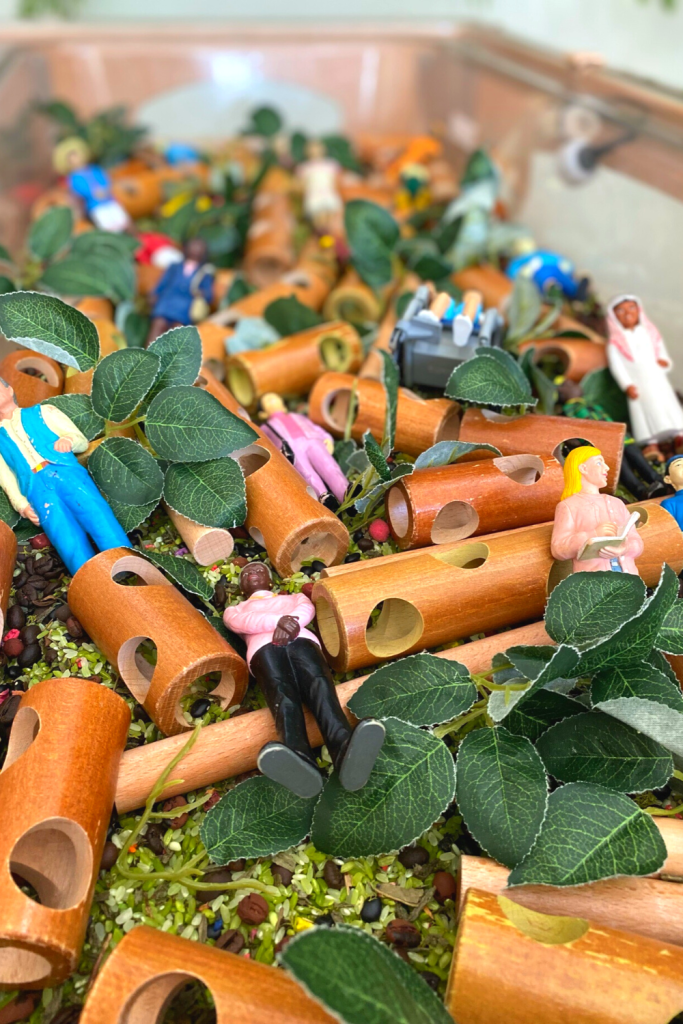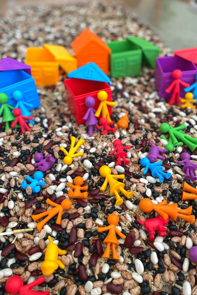 Add materials to a sensory bin and have kids fill each others buckets with kindness.