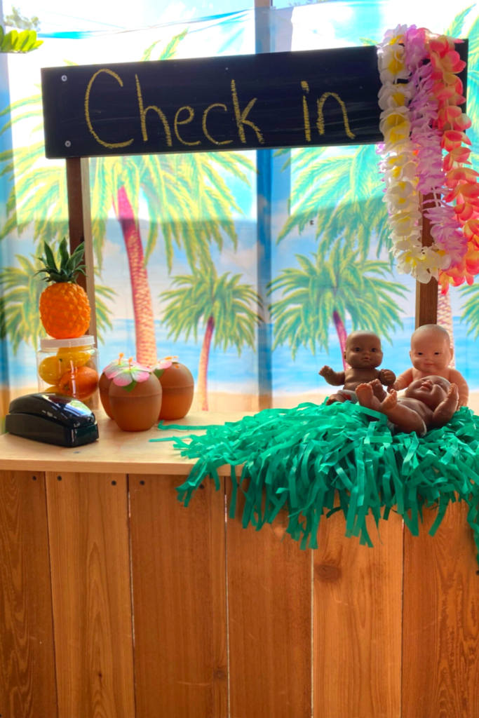 All Hawaii decor was from the Dollar tree!! It goes fast, so as soon as you see it grab it!