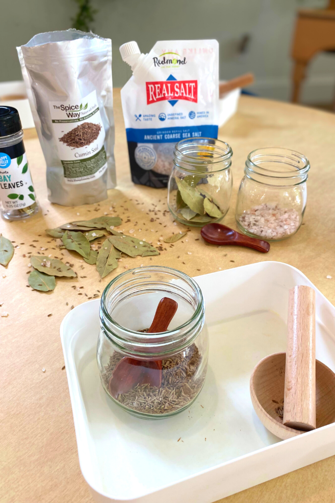Mortar and pestle have been used everywhere and have a great deal of history, but were found to be used in Ancient Egypt in 1550BC to grind food, medicine, cosmetics etc. Have kids spoon a small amount of their herbs into the mortar and use the pestle to crush it up!