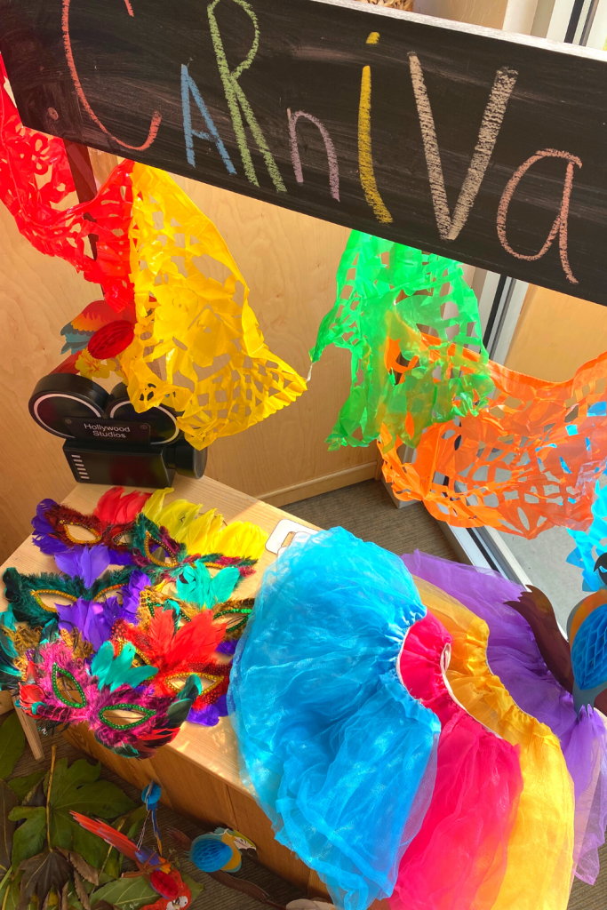 For this set up, I tried to replicate the Carnival in Rio De Janeiro. I added as much color as I could and played some music for the kids.