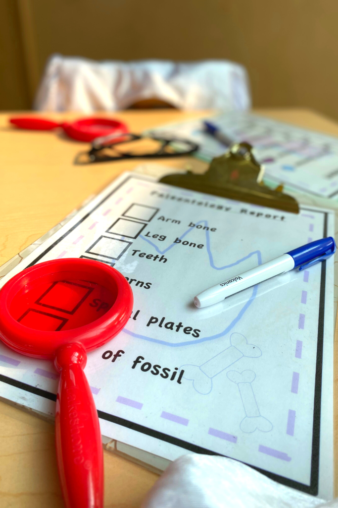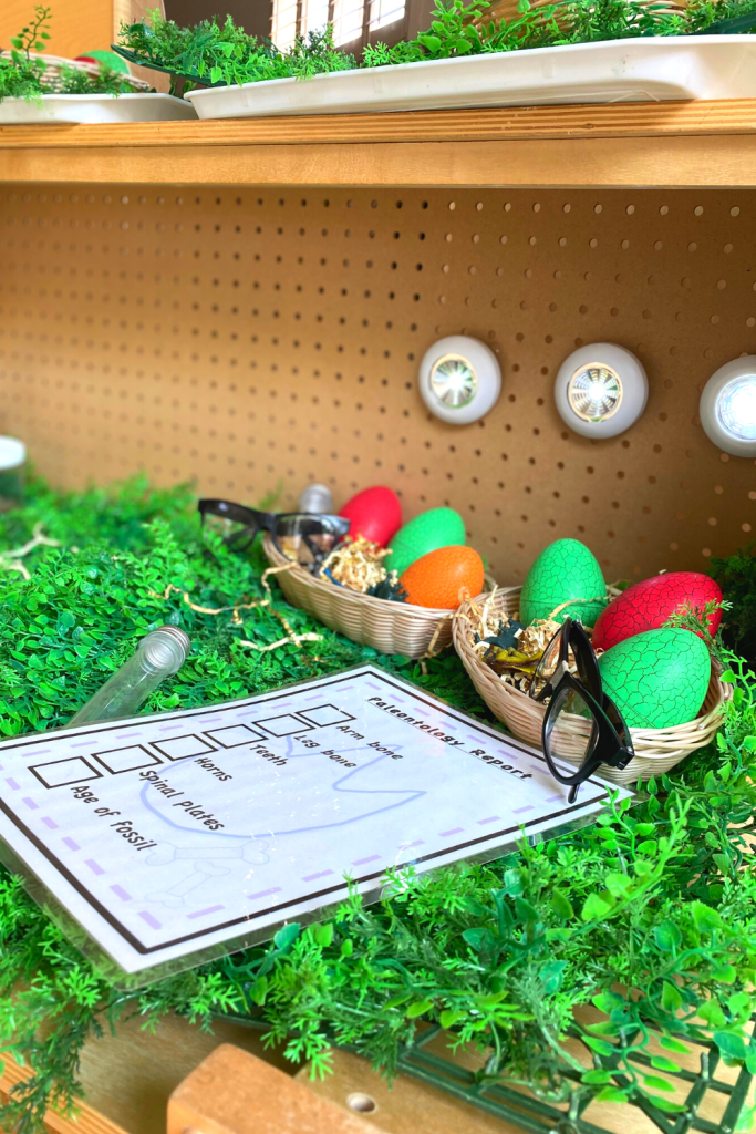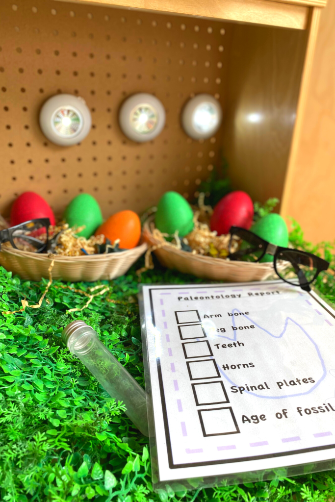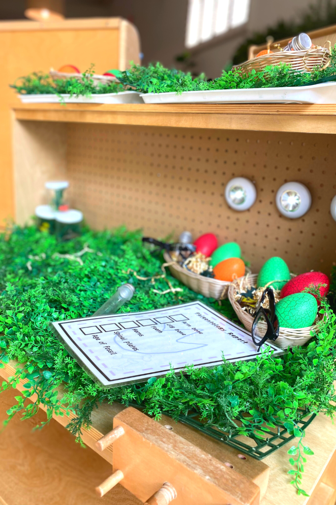 Set up you lab/work area and have kids examine/study the dinosaurs!