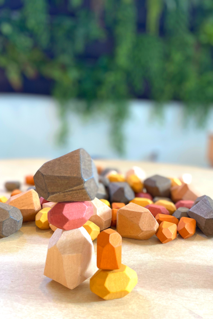 This was the EASIEST set up I have done. We recently purchased these stacking stones from amazon…and I am in LOVE! The kids use fine, and gross motor skills, in addition to problem solving and focus to stack and balance the stones. I then added some blocks in for an additional challenge.