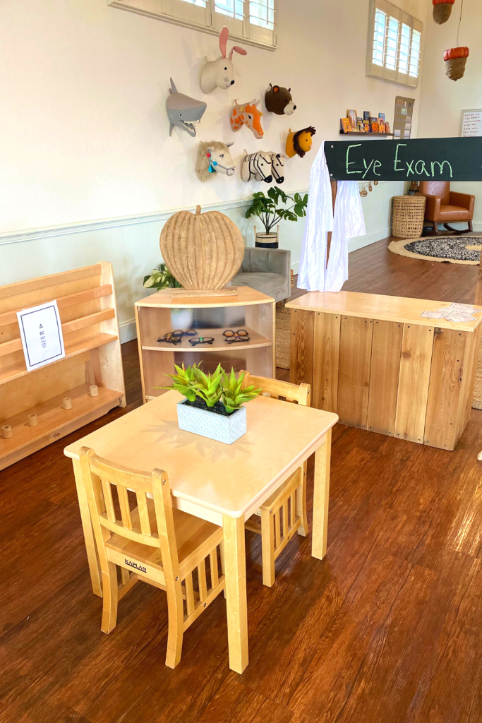 This one was fun to set up. I have mentioned in previous posts that when I repeat an activity, I try to add something new to make it a little different. This year I added colored tape to the glasses for variety, changed the location, added kaleidoscopes, prescriptions and fake magazines. So yes, the original was just the eye charts and the plain glasses 😂.