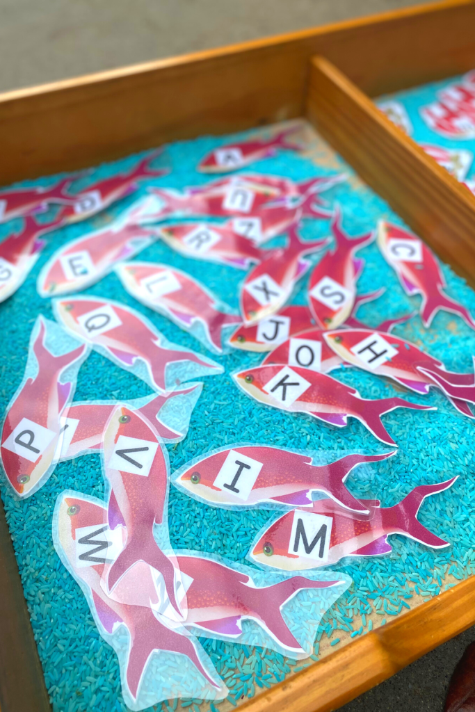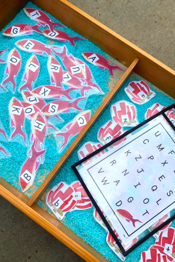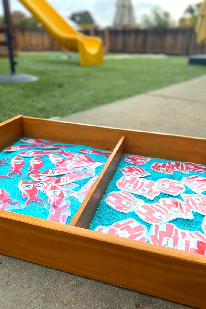 As always we have our outdoor Zoo-Phonics themed alphabet flash cards. The kids LOVE playing imagination, making the rice “rain”, and finding the matching letters on the page I provide them. These are so much fun and the kids NEVER get tired of them.