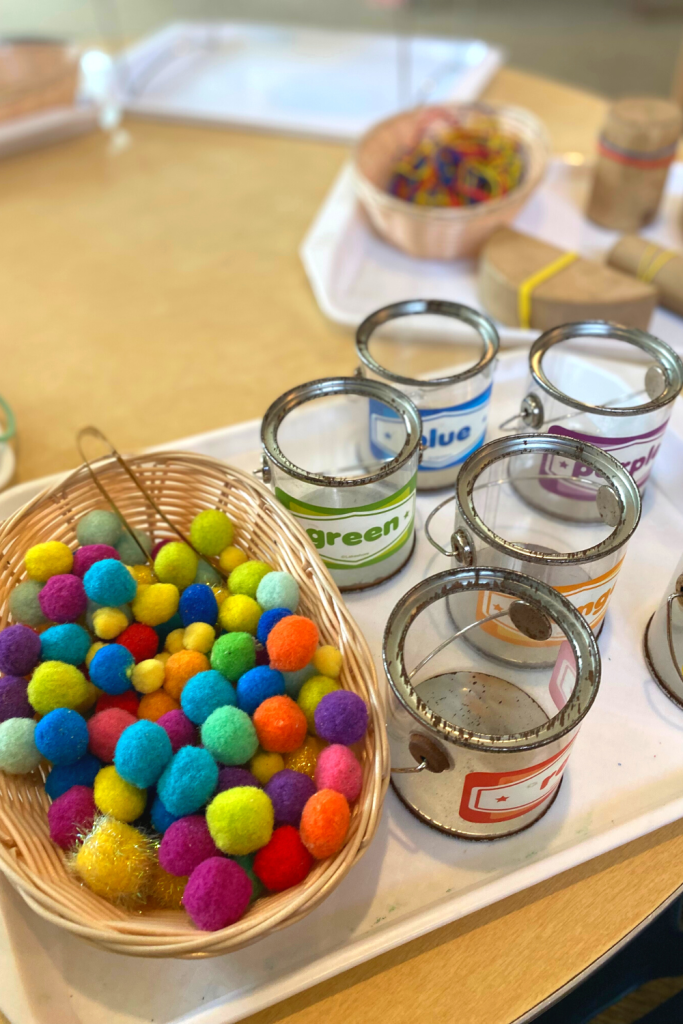 - Sorting pompoms with tongs/tweezers
