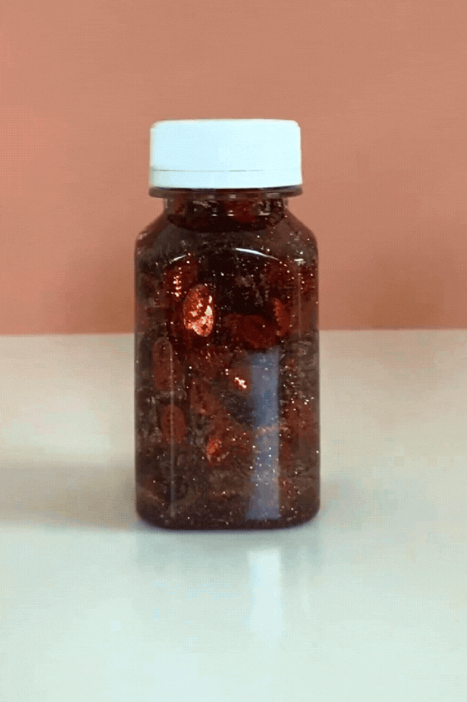 👉🏻To a jar add water about 3/4 of the way. Fill the rest with oil, any will do.