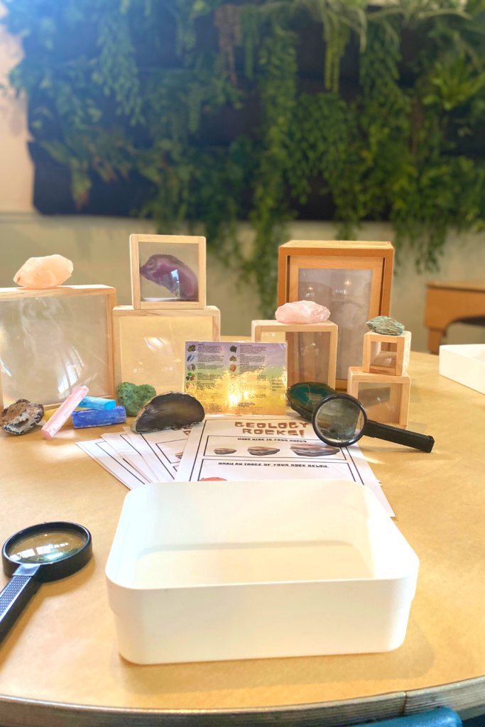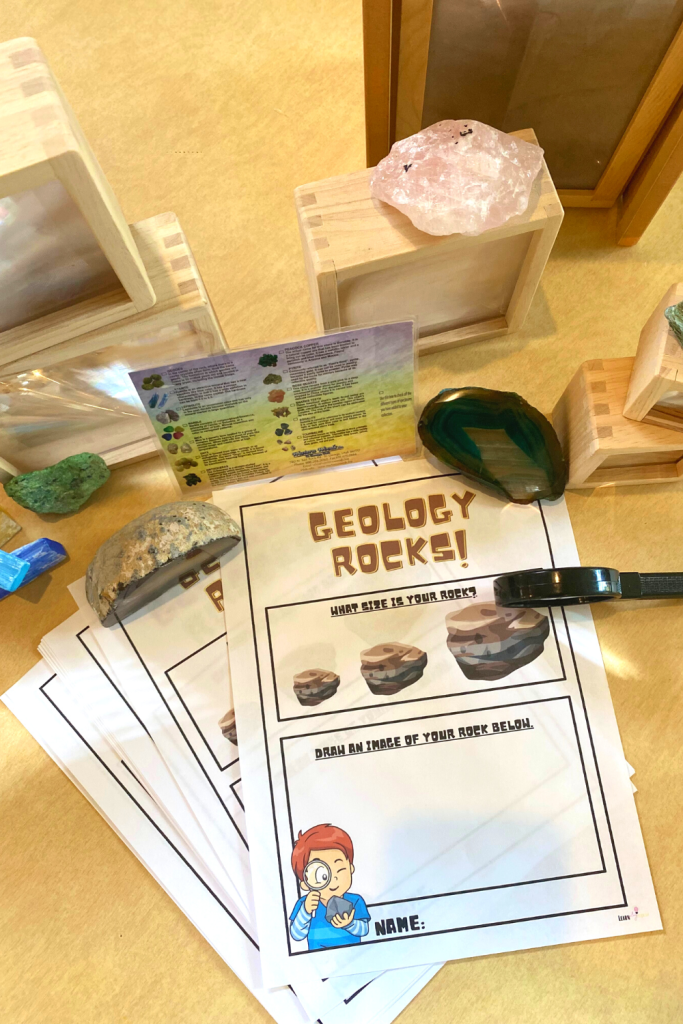 I recently took a trip to Montana to visit family and came across these BEAUTIFUL rocks/geodes/crystals in a small shop, (they can be found almost anywhere). I thought they would be perfect for a science activity, and I was right! They kids LOVED seeing all of the colors and using the different magnifying glasses to analyze them. I also purchased chocolate rock candies that look like real rocks as a fun treat.