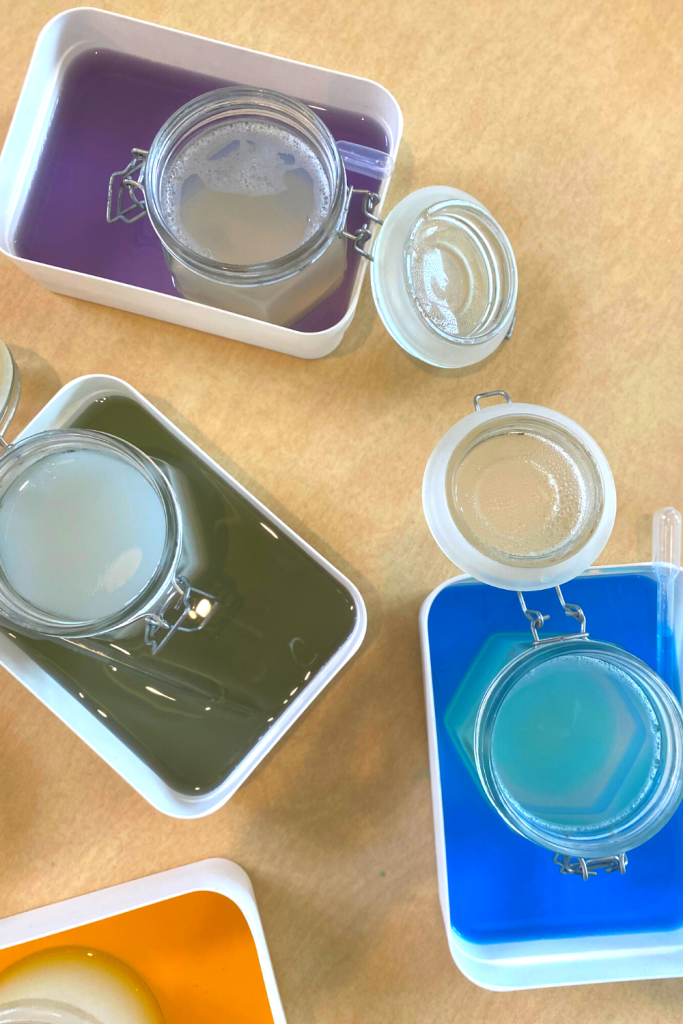 Have the kiddos use pipettes to squeeze the colors into the gelatin and watch as they burst inside.