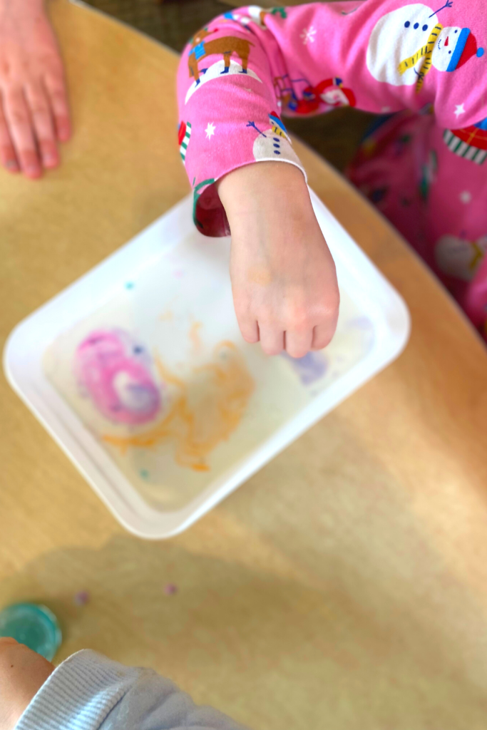 If you have never tried this science experiment, grab your milk from the fridge now! It is so fun, and calming!