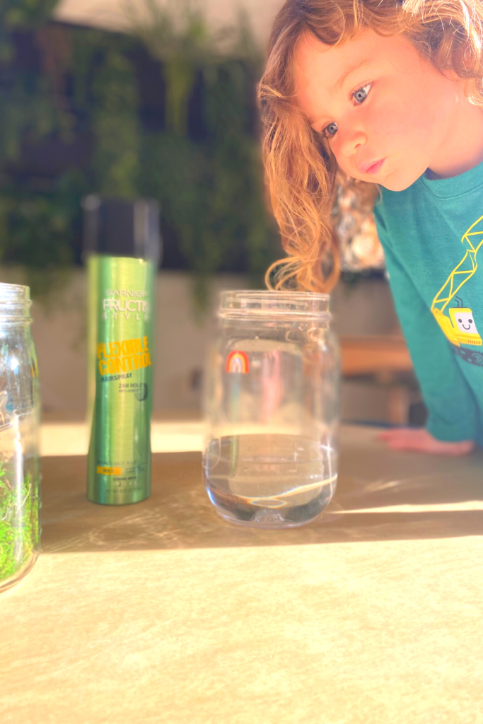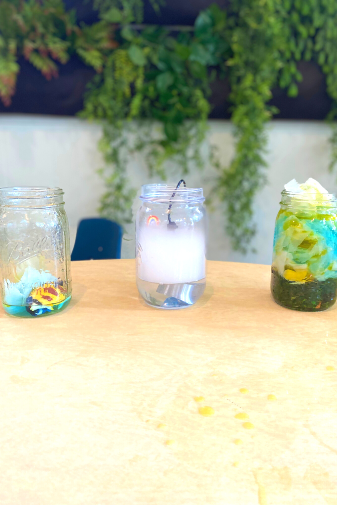 Air- I placed a rainbow sticker on the back of the jar. I asked the kids if they can see it. We discussed what causes air pollution and then I used a fog machine to represent the air pollution. “Can you still see the rainbow?” “How can we help to prevent/fix this?”