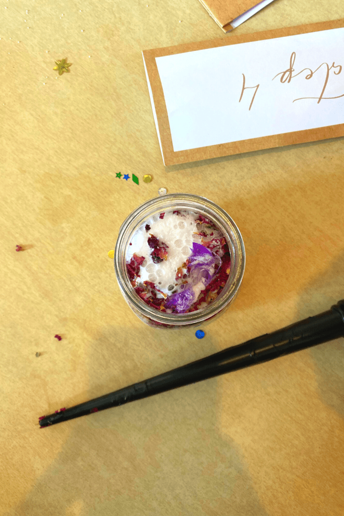 The last step is bath fizz so when it was added, it bubbled right out of the “cauldron”!