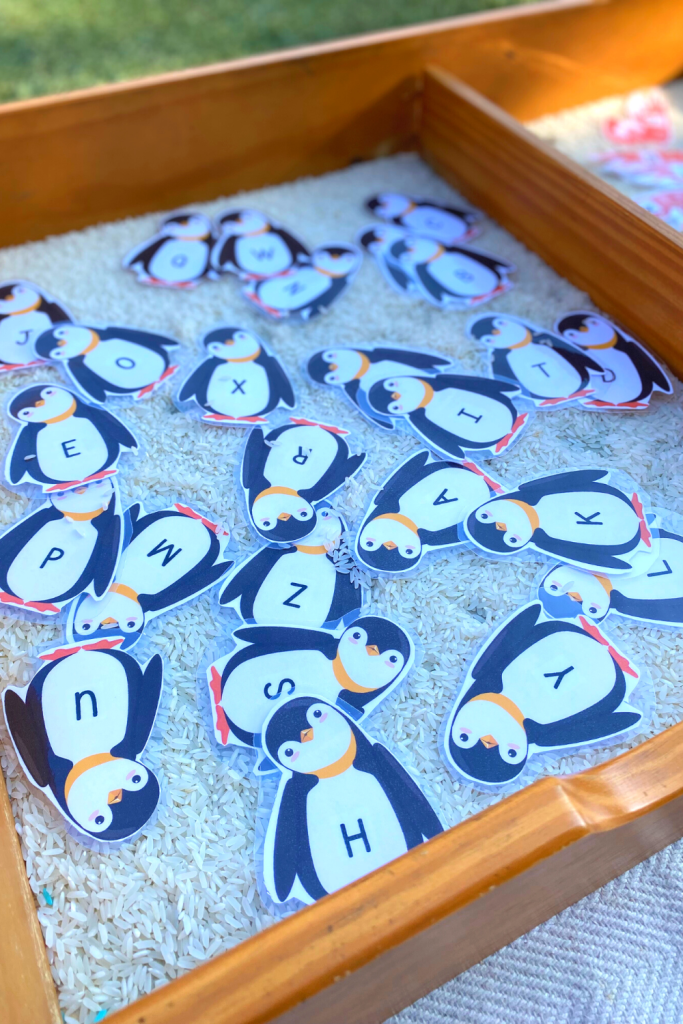 Hello and welcome to “P” week! If you’ve been following me for a while, you know I always start things off with the outdoor sensory bin. This keeps a sense of routine for the kids.