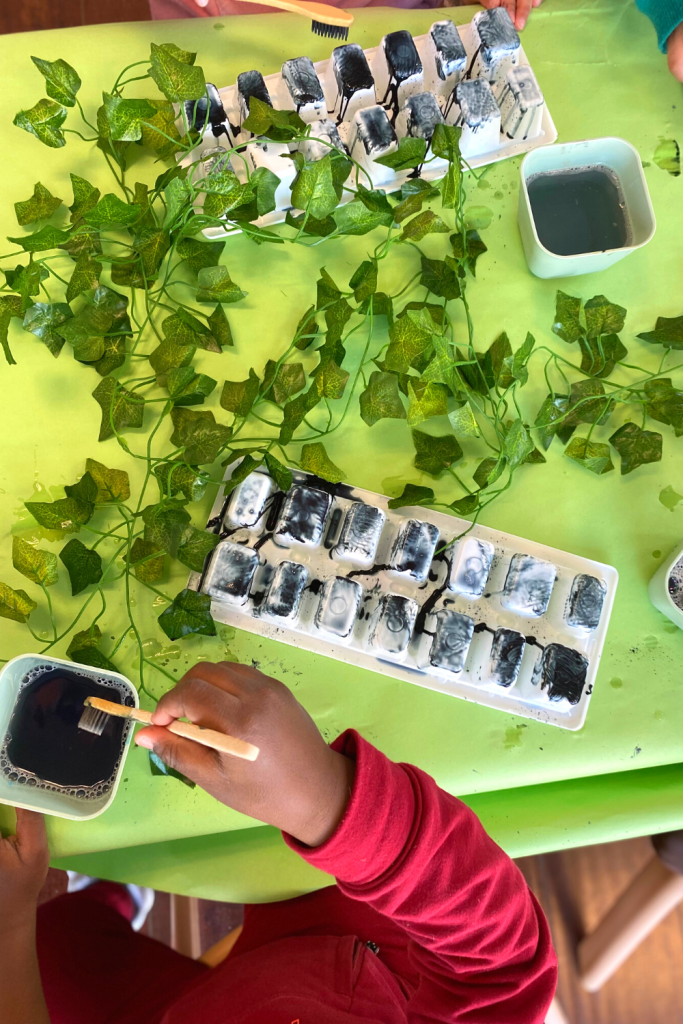 I used ice cube trays, black paint, soapy water, and tooth brushes.